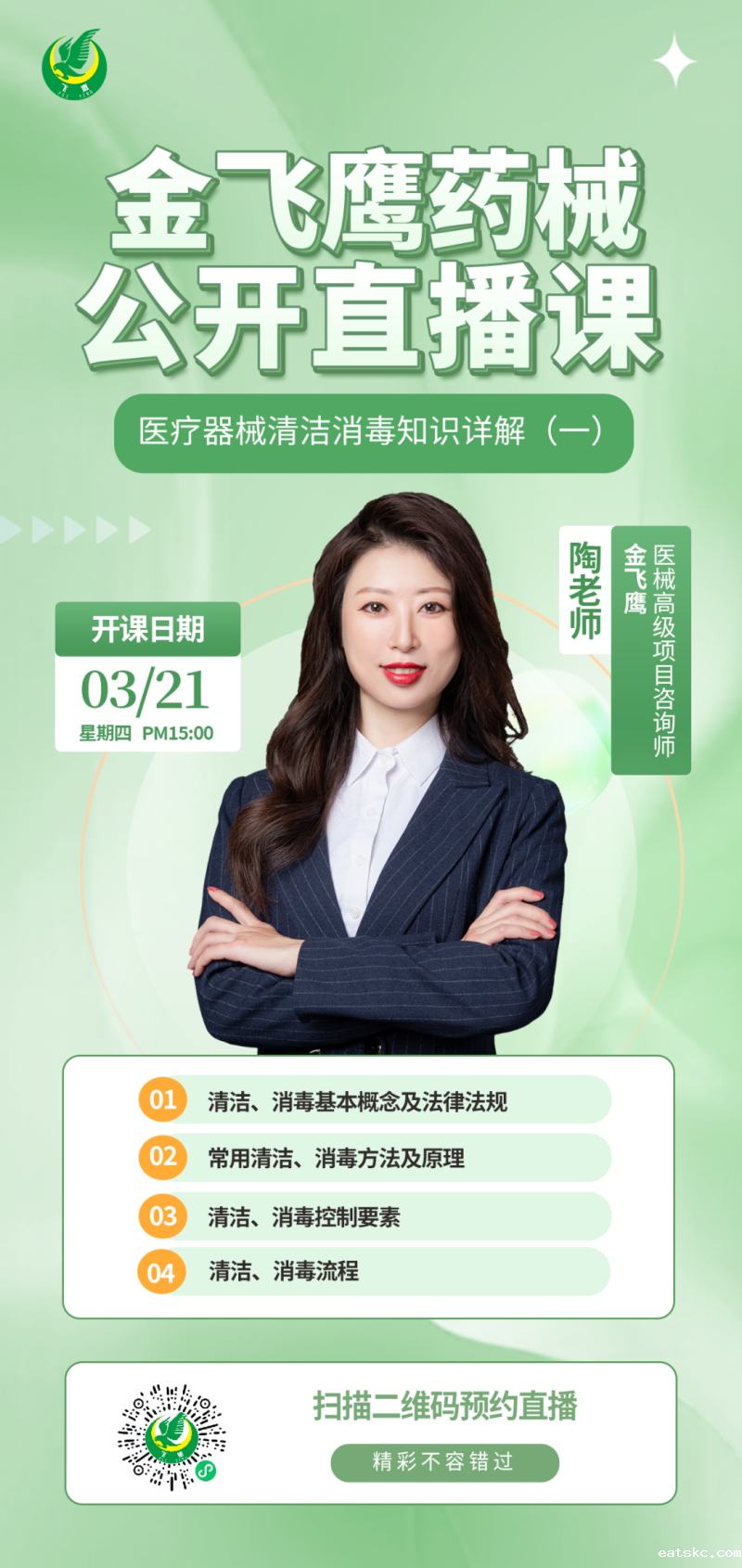 3月21日下午3点,betway必威西盟体育官网入口高级项目咨询师,负责过多种无菌和植入耗材类医疗器械产品国外委托生产&国内技术转移项目,对医疗器械消毒灭菌颇有研究的陶老师,给大家带来《医疗器械清洁消毒知识详解(一)》,培训内容包括清洁/消毒基本概念及法律法规、常用清洁/消毒方法及原理、清洁/消毒控制要素、清洁/消毒流程等,因涉及到的内容较多,这一主题将分为两期内容来讲,大家记得要持续关注哦!