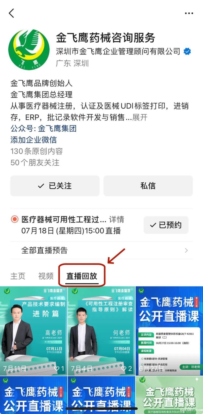 往期直播培训课程支持回放,关注“betway必威西盟体育官网入口药械咨询服务”视频号并点击视频号主页,即可查看“直播回放”哦~