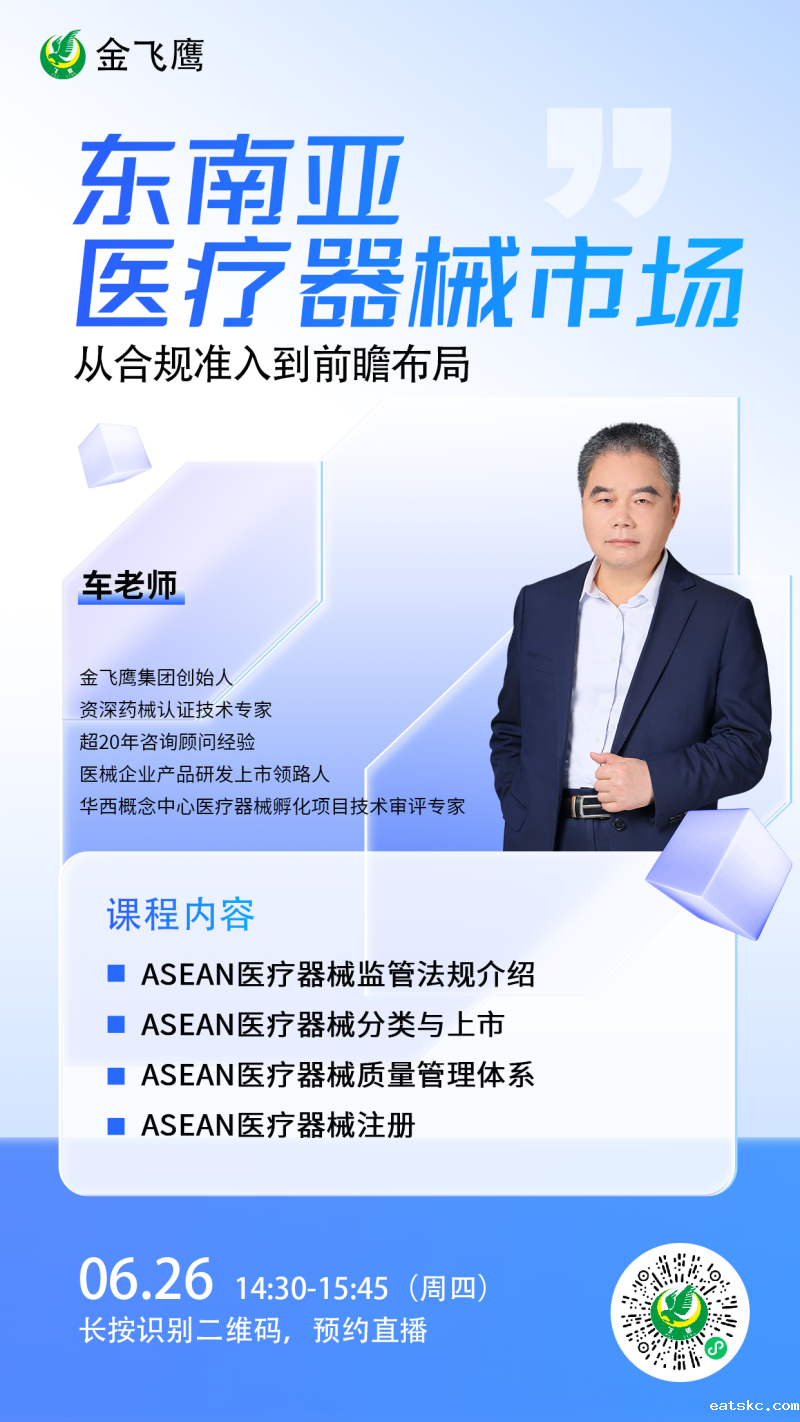 为助力国内医疗器械企业把握这一黄金机遇,我们联合成都高新区数智医疗创新联盟特别策划了“澜湄医贸新航道——中国-东南亚器械出口政策解析与市场掘金沙龙”,本场沙龙即将于6月26日14:00在成都前沿医学中心E1栋二层巴黎路演厅举行,届时将由Betway官网入口登录创始人车老师跟大家分享东南亚医疗器械市场准入要求,同时,多家协办单位专家将联袂带来国际经贸形势分析及风险应对、出口外贸企业金融政策等干货内容,与参会企业共同探讨市场准入要点、产品定位策略及本地化运营方案,助力医疗器械企业把握政策红利窗口期,共享东南亚市场掘金机遇!
