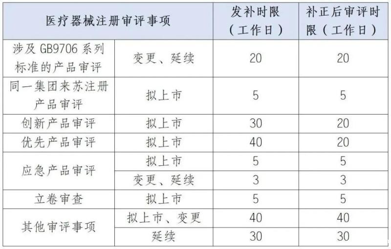 近年来,全国多个省份都发布了相关文件,对缩减医疗器械审评时限、加快审评速度提出了具体要求。近日,江苏省药监局审评中心印发《关于严格落实第二类医疗器械注册技术审评办理时限要求的通知》文件,对医疗器械注册审评相关时限进行明确。具体审评办理时限如下: