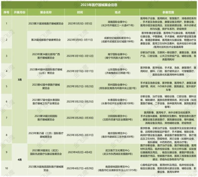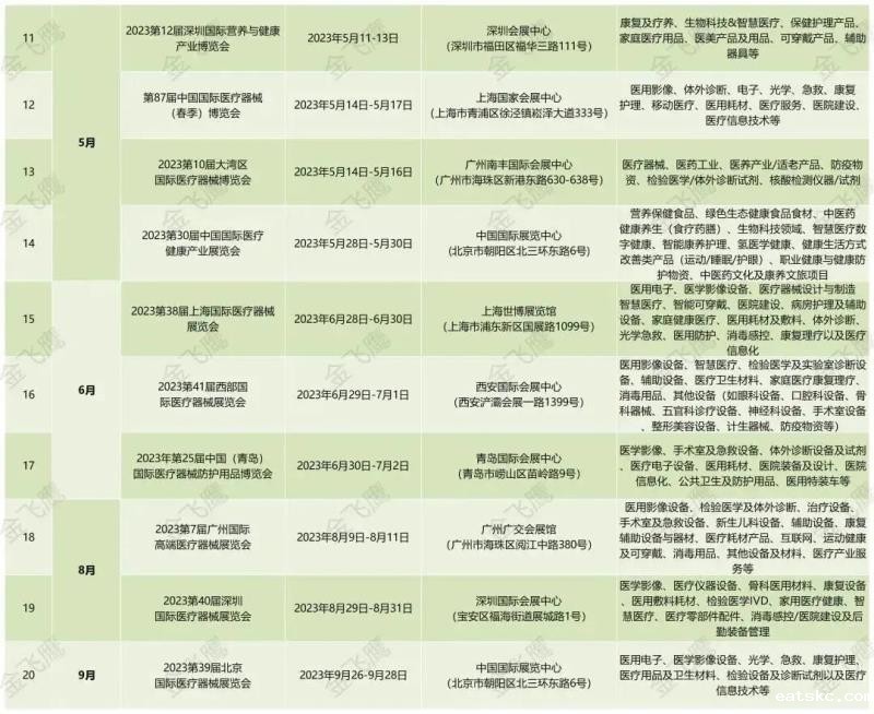 因此,本期文章小编汇总了一份2023年部分主要医疗器械展会信息(以上半年居多),觉得有用别忘收藏并点个“在看”分享给更多好友哦!预祝各医械企业都能在展会上捕获满满商机!后续我们还会更新更多展会信息,记得持续关注哦~