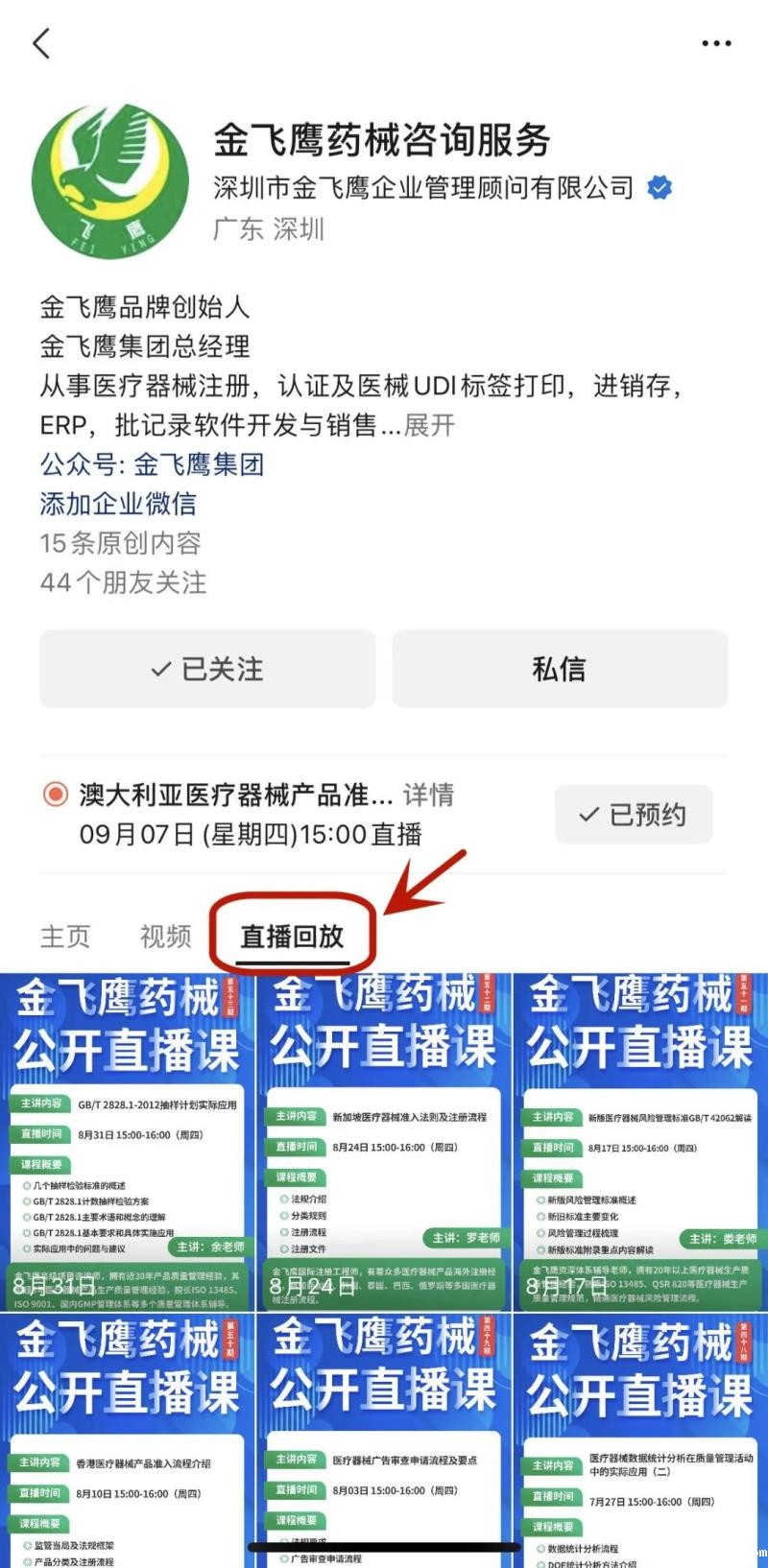 往期直播培训课程支持回放,关注“betway必威西盟体育官网入口药械咨询服务”视频号并点击视频号主页,即可查看“直播回放”哦~