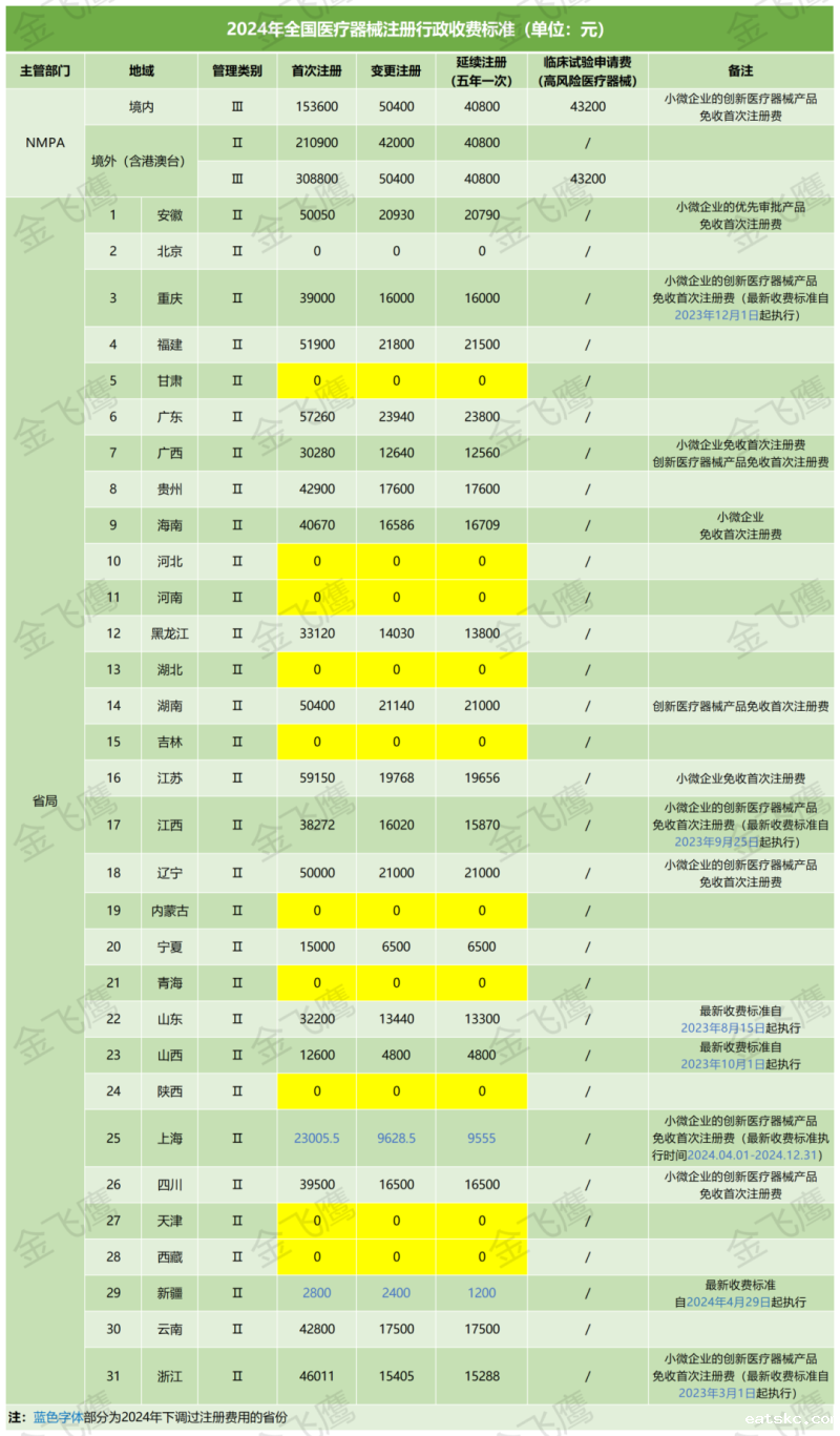 经常关注我们的朋友也许还记得,2023年,山东、山西、江西等省份也分别调整了医疗器械注册行政收费,那么本期文章我们就将2024年最新的【全国各省医疗器械注册行政收费】汇总整理如下图,大家记得收藏备用哦!