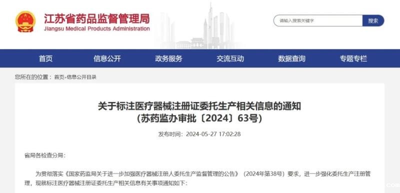 一、自2024年6月1日起,涉及境内委托生产的注册申请或者延续注册申请,省局将在医疗器械注册证生产地址栏中登载受托生产地址并注明“(委托生产)”,同时在备注栏中备注受托生产企业名称和统一社会信用代码,备注形式为“受托生产企业:XXXX(单位名称);统一社会信用代码:XXXX”。变更注册涉及注册人委托生产的,也将在变更注册文件中按照上述方式注明委托生产相关信息。