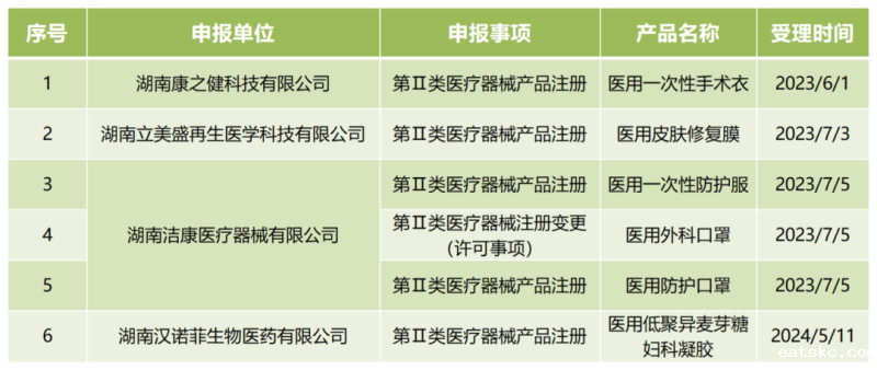 7月3日,湖南药监局发布公告称,“医用一次性手术衣”“医用皮肤修复膜”等6个医疗器械产品的注册申请人未按规定缴纳注册费用,根据《医疗器械注册与备案管理办法》第五十三条规定,该局决定终止这6个医疗器械产品注册程序,具体明细如下: