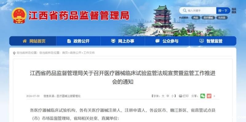 1 会议时间与地点 (一)会议时间:2024年8月6日(周二)下午2点开会,6日上午报到。 (二)会议地点:南昌绿地华邑酒店(地址:南昌市青山湖区紫阳大道3333号高新绿地中心),联系电话:0791-82223333。 2 会议内容 (一)局领导讲话(线上同步直播); (二)《医疗器械临床试验机构监督检查办法(试行)》及《医疗器械临床试验机构监督检查要点及判定原则(试行)》解读(线上同步直播); (三)医疗器械临床试验监管工作推进会,部署安排2024年度医疗器械临床试验机构检查工作; (四)座谈交流; (五)培训考试。