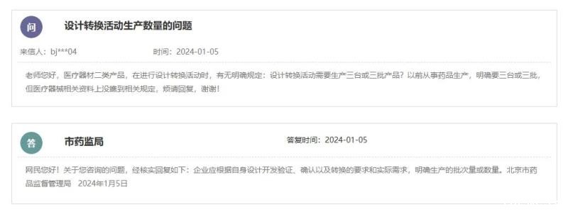 根据北京市药监局的答复,生产数量没有硬性规定,企业应根据自身设计开发验证、确认以及转换的要求和实际需求,明确生产的批次量或数量。