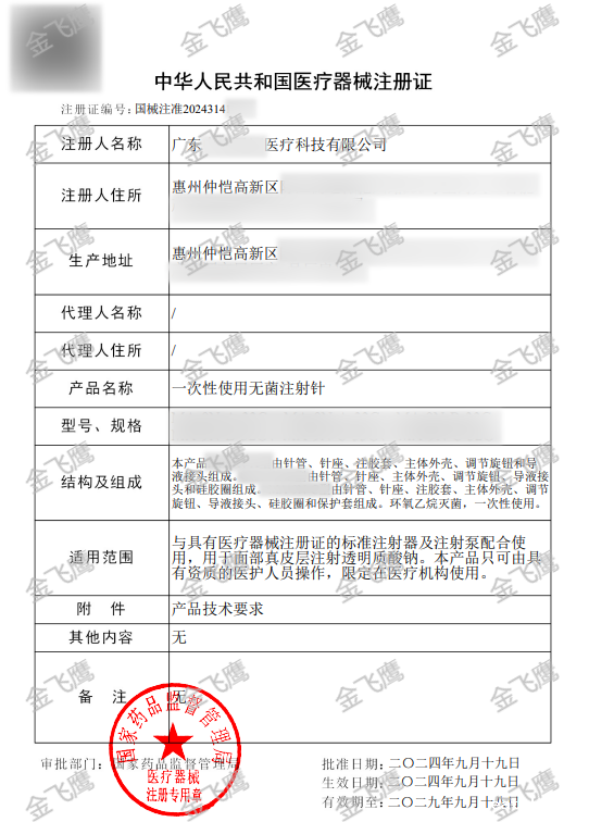 成功拿到了“一次性使用无菌注射针”的