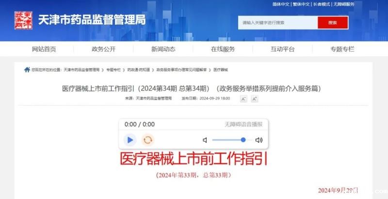 近日,天津市药监局发布新一期医疗器械上市前工作指引,汇总了医疗器械产品注册申报前的提前介入服务相关要求,具体如下:
