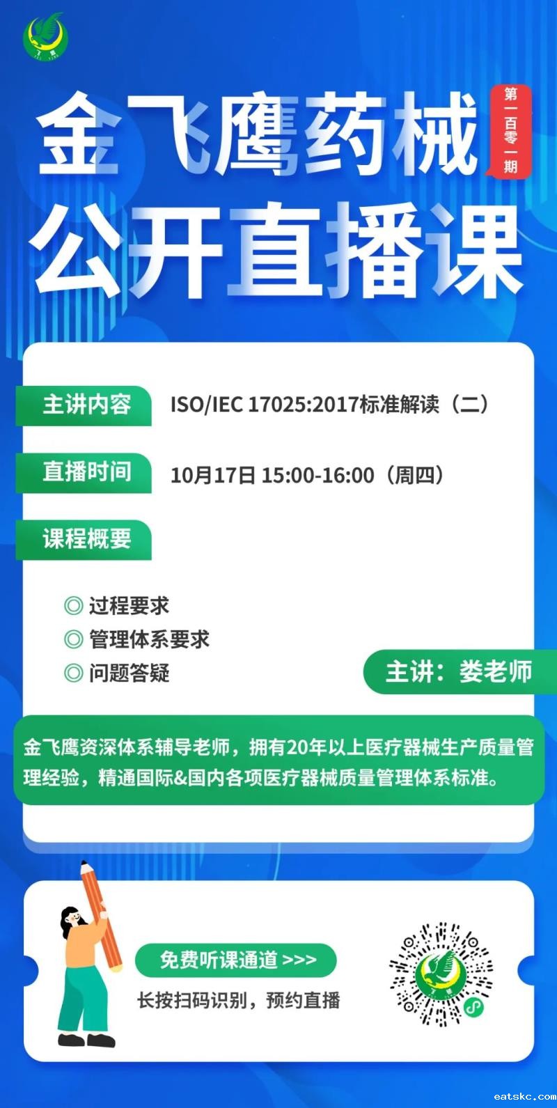 那么,假如企业需提交自检报告,有哪些具体要求呢?对此,国家药监局发布了《医疗器械注册自检管理规定》(以下简称《规定》),以规范注册申请人注册自检工作。作为一项重要的注册自检参考文件,《规定》从自检能力、自检报告等方面对企业提出了多项要求,其中“自检能力要求”中提到,“注册时开展自检的,注册申请人应当具备自检能力,并将自检工作纳入医疗器械质量管理体系,配备与产品检验要求相适应的检验设备设施。”但在实际应用时企业还是会有不少问题,比如到底如何判断自身是否具备自检能力?自检实验室有什么要求?根据betway必威西盟体育官网入口的日常辅导经验,结合《规定》要求,企业自检实验室应按照ISO/IEC 17025《测试和校准实验室能力的通用要求》要求实施,因而此次我们给大家安排了ISO/IEC 17025标准解读的课题,因涉及的内容较多,我们将此主题分成了两期来讲。9月26日的直播课我们给大家带来了课程第一讲,主要讲的是基本概念、管理要求、结构要求、资源要求等方面的内容,本次我们继续给大家带来标准最后个版块内容的详细解读及一些常见问题答疑。10月17日下午3点,betway必威西盟体育官网入口高级项目咨询师,从事GMP管理相关工作20年,精通国际&国内各项医疗器械质量管理体系标准的娄老师,给大家带来《ISO/IEC 17025:2017标准解读(二)》,培训内容包括过程要求、管理体系要求及问题答疑,想听课的朋友记得提前预约哦!