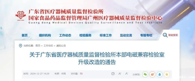 近日,广东省医疗器械质量监督检验所发布通告称,该所本部电磁兼容检验室将进行实验室升级改造及屏蔽室、暗室等设施维修保养,期间屏蔽室、暗室等全部设施场地将被围蔽施工,无法正常使用,相关检验设备也将暂停使用。受此影响,对2024年12月30日至2025年1月20日期间受理的送检广州本部电磁兼容检验室的检验任务,其检验周期将在原有周期基础上增加15个工作日。
