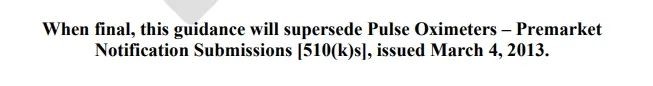 的来说,本指导文件草案提供了 FDA 关于非临床和临床性能测试的建议,以支持医疗用脉搏血氧仪(包括具有脉搏血氧仪功能的设备)的上市前提交。提出这些建议的部分原因是担心脉搏血氧仪的准确性会受到人的皮肤色素沉着等因素的影响,同时为这些器械的性能评估提供信息,以支持上市前提交(无论提交类型如何),确保一致性,以促进对这些提交的高效审查。