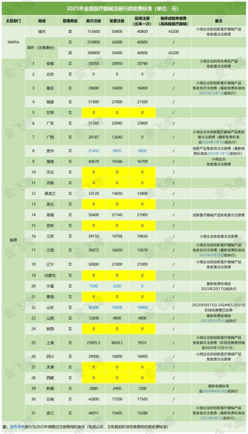 最后依然是按咱们的老规矩,我们将2025年【全国各省医疗器械注册行政收费标准】进行实时更新,具体见下图,大家记得收藏备用哦!