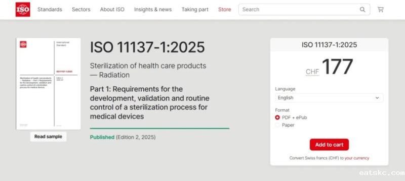 近日,国际标准化组织发布了有关医疗保健产品辐射灭菌的新版标准ISO 11137-1:2025 Sterilization of health care products — Radiation — Part 1: Requirements for the development, validation and routine control of a sterilization process for medical devices,通过查看ISO官网发布的标准样本,我们给大家整理了本次标准主要更新内容: