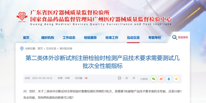 根据广东省医疗器械质量监督检验所的答复,二类体外诊断试剂检测可选择只做1批全性能,其他两批做批间差。鉴于试剂注册检验需要配套仪器资料,因此建议待仪器性能注册检测合格后或仪器已经过第三方的计量校准,再申请试剂注册检验。