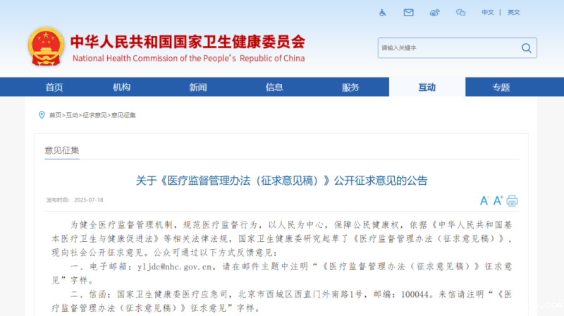 近日,国家卫健委发布《医疗监督管理办法(征求意见稿)》(以下简称《办法》),并向社会公开征求意见。