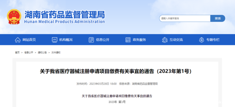 近日,湖南省药监局官网发布《关于医疗器械注册申请项目缴费有关事宜的通告》(以下简称《通告》),其中有关缴费要求等重点内容如下: