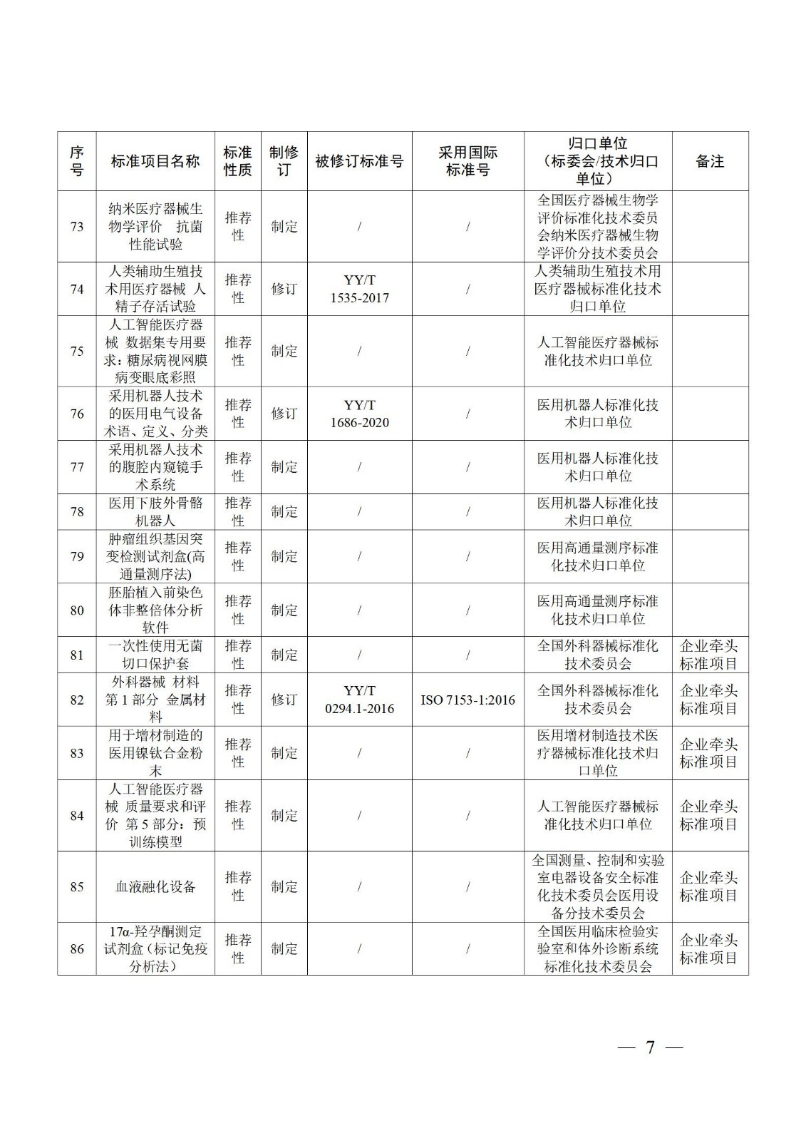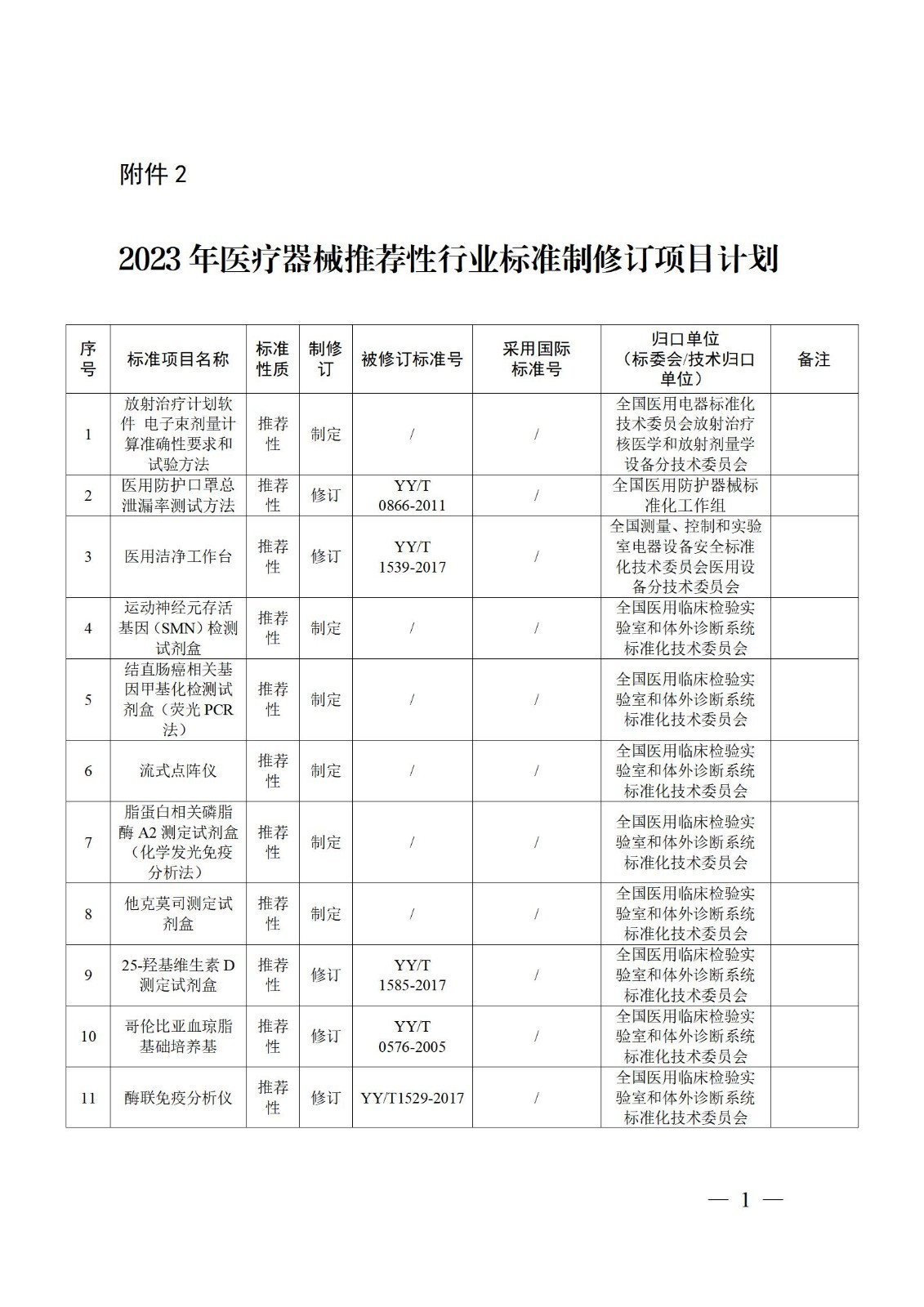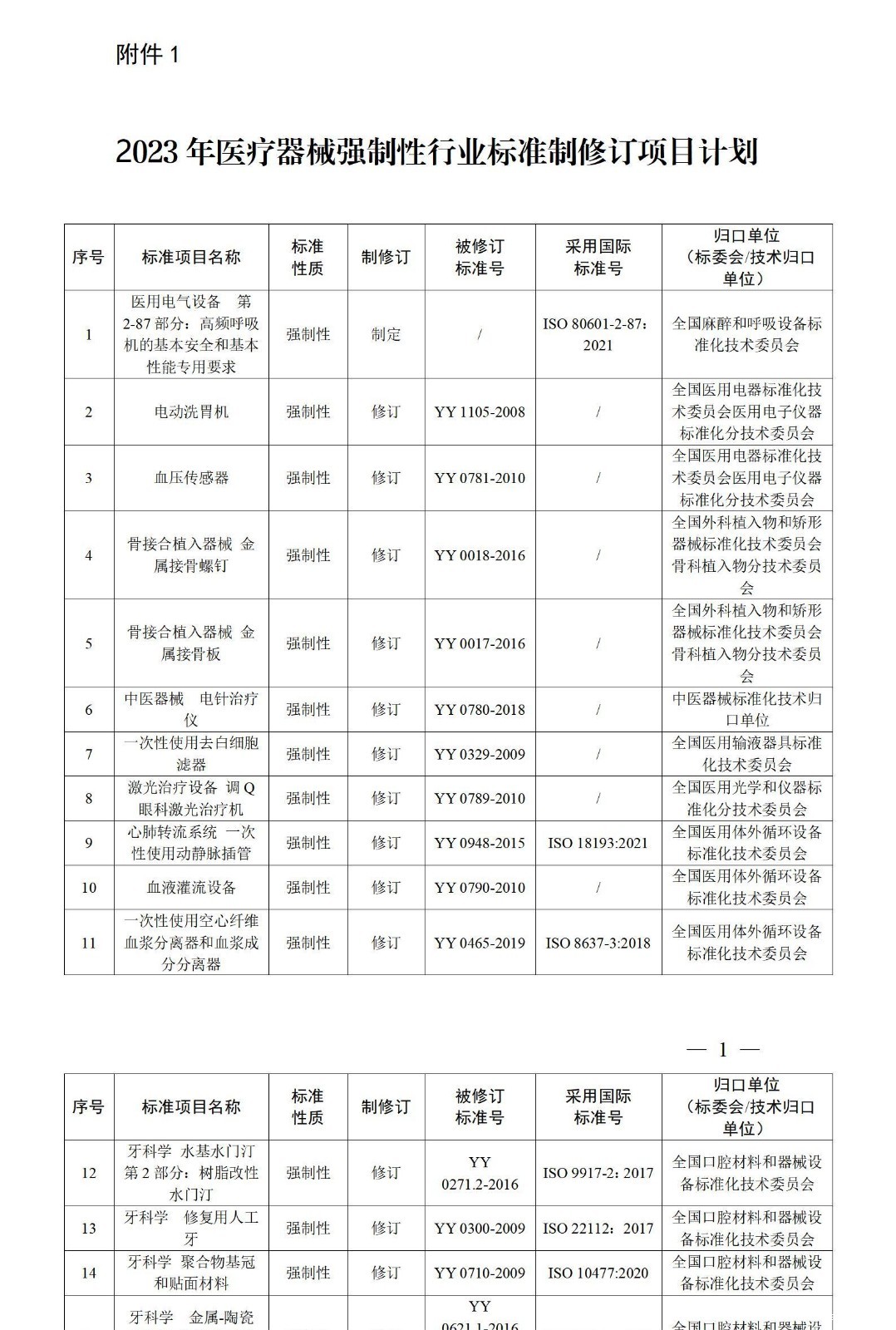 近日,国家药监局官网发布2023年医疗器械行业标准制修订计划,其中包括15项强制性标准(1项制定14项修订)和102项推荐性标准(56项制定46项修订),具体如下: