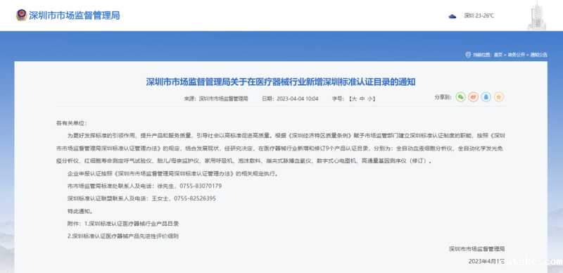 4月4日,深圳市市场监督管理局官网发布《关于在医疗器械行业新增深圳标准认证目录的通知》(以下简称《通知》)。《通知》指出,在医疗器械行业新增和修订9个产品认证目录,分别为:全自动血液细胞分析仪、全自动化学发光免疫分析仪、红细胞寿命测定呼气试验仪、胎儿/母亲监护仪、家用呼吸机、泡沫敷料、指夹式脉搏血氧仪、数字式心电图机、高通量基因测序仪(修订)。《通知》中提到的有关先进性评价细则等附件,大家可点击文末“阅读原文”查看。
