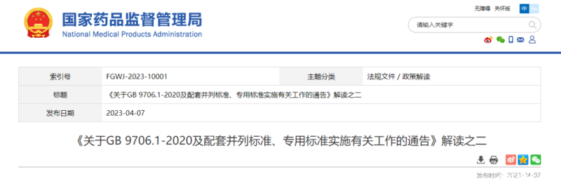 近日,国家药监局官网发布《关于GB 9706.1-2020及配套并列标准、专用标准实施有关工作的通告》解读,进一步明确了新版GB 9706系列标准实施工作相关事项,具体内容如下:
