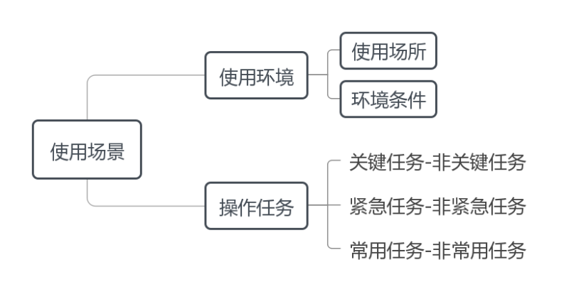 如图1所示,使用场景是指注册申请人所规定的医疗器械实际使用的场景因素,包括使用环境和操作任务。使用环境是指用户操作医疗器械的实际环境,又可分为使用场所、环境条件,其中使用场所包括门诊室、急诊室、手术室、病房、救护车、家庭、公共场所等情况,环境条件包括空间、照明、温度、湿度、气压、洁净度、噪声、振动、辐射等情况。操作任务是指用户操作医疗器械以实现特定目标的行动或行动序列,本指导原则重点关注医疗活动相关操作任务,暂不考虑清洁、运输、安装、维修、处置等操作任务(医疗器械安全标准若有相应要求除外),待时机成熟时纳入考量。不过注册申请人需考虑全部操作任务的人因设计要求。