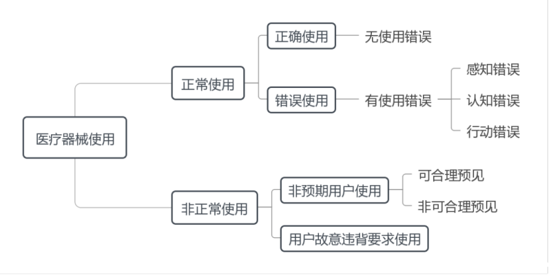 如图2所示,医疗器械使用情况可分为正常使用和非正常使用,其中正常使用是指用户按照说明书要求及常识惯例操作医疗器械,反之即为非正常使用。