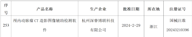 近日,国家药品监督管理局正式批准了杭州深睿博联科技有限公司研发的“颅内动脉瘤CT造影图像辅助检测软件”注册申请。该软件包含浏览器端和服务器端两部分,专为头颈动脉CT血管造影图像的显示、处理、测量和分析设计,特别针对颅内3mm及以上的动脉瘤进行辅助检测。