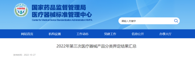 10月27日,国家药监局医疗器械标管中心发布2022年第三次医疗器械产品分类界定结果汇总,前两次分类界定结果请点击下方链接查看 ☟