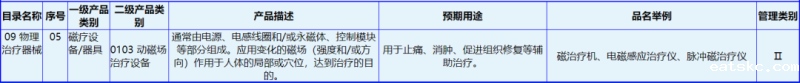 跟穴位磁疗贴一样,磁场综合治疗系统也是属于磁疗产品这个大类,它在我国作为第二类医疗器械管理,产品分类编码09-05-01。
