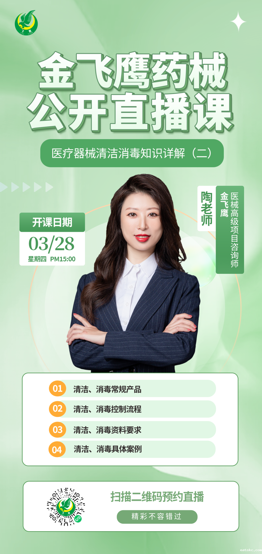 3月28日下午3点,betway必威西盟体育官网入口高级项目咨询师,负责过多种无菌和植入耗材类医疗器械产品国外委托生产&国内技术转移项目,对医疗器械消毒灭菌颇有研究的陶老师,继续给大家带来《医疗器械清洁消毒知识详解(二)》,培训内容包括清洁/消毒常规产品、清洁/消毒控制流程、清洁/消毒资料要求、清洁/消毒具体案例等,大家千万不要错过了哦!