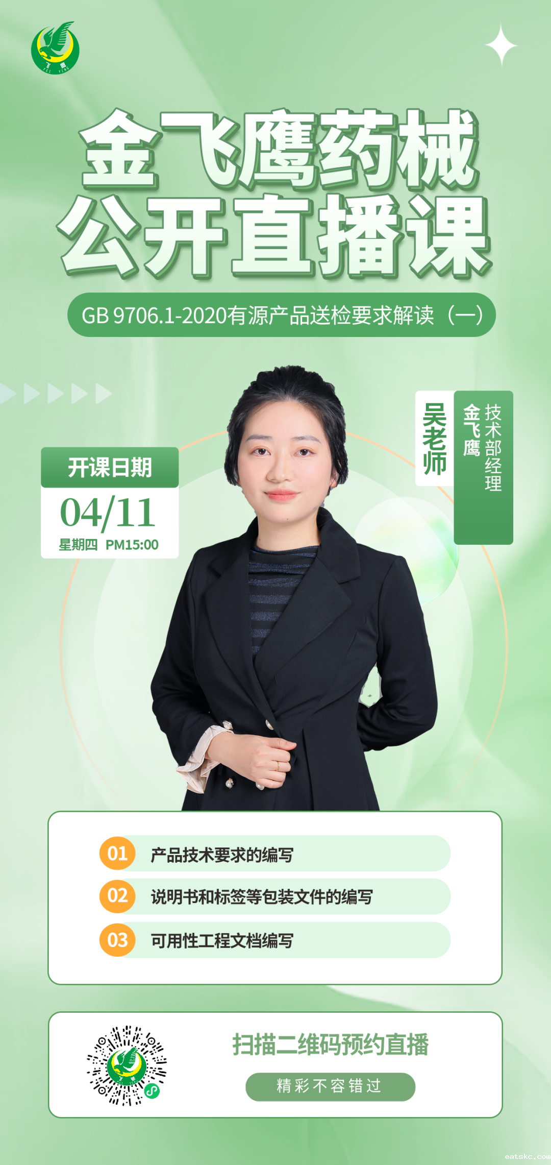 4月11日下午3点,betway必威西盟体育官网入口技术部经理兼高级讲师,有着近十年医疗器械行业工作经验,尤为擅长【有源产品】合规准入上市认证的吴老师,给大家带来《GB 9706.1-2020有源产品送检要求解读(一)》,培训内容包括产品技术要求的编写、说明书和标签等包装文件的编写、可用性工程编写等,因涉及到的内容较多,这一主题将分为两期内容来讲,大家记得要持续关注哦!
