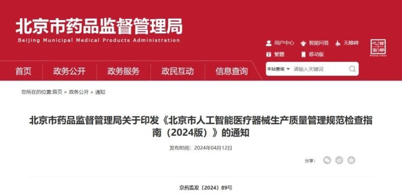 近日,北京市药监局发布《北京市人工智能医疗器械生产质量管理规范检查指南(2024版)》(以下简称《检查指南》),我们将其中第四部分“设计开发”内容转载如下: