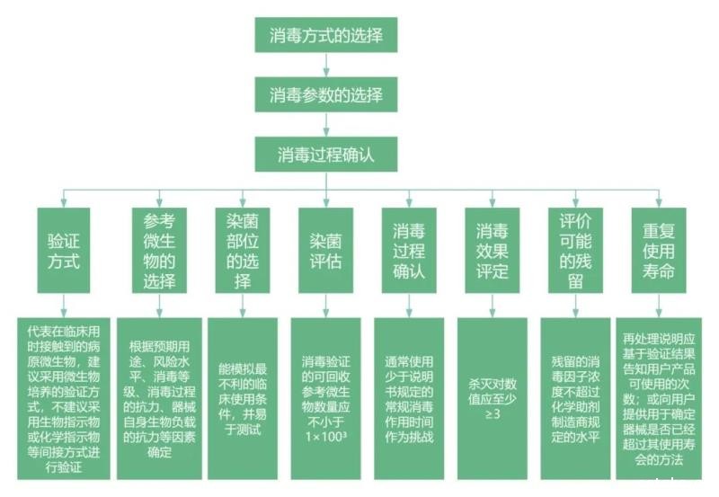 消毒确认是可重复使用医疗器械再处理过程的重要环节,它是通过物理或化学的方法清除或杀灭传播媒介上致病微生物,使其达到无害化的处理。其确认过程较为复杂,大体流程如下: