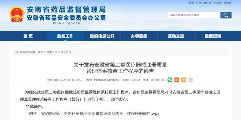 第二十四条 本程序自发布之日起施行。《关于发布安徽省第二类医疗器械注册质量管理体系核查工作程序(暂行)的通告》(安徽省药品监督管理局通告2019年第4号)同时废止。