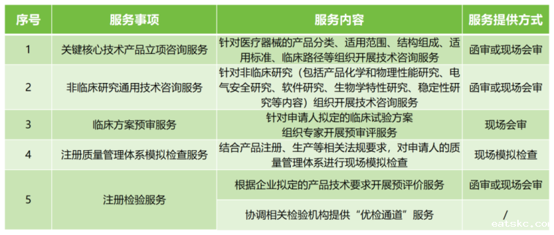 广州市医疗器械创新技术服务事项包括以下五种类型: