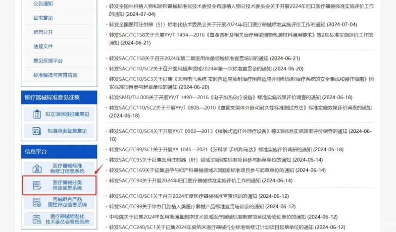 第三步,在页面左下角“信息平台”中进入“医疗器械分类界定信息系统”;