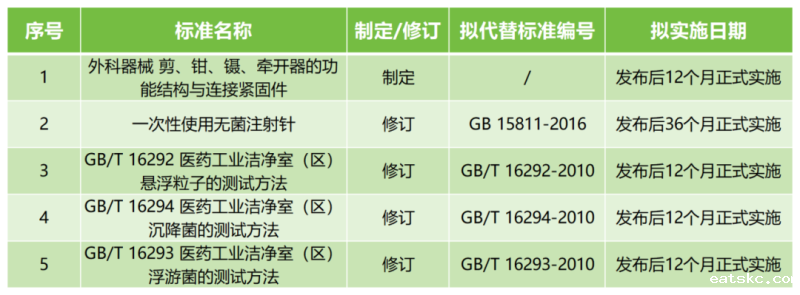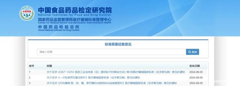 8月5日,国家药监局医疗器械标准管理中心发布几则关于征求医疗器械国家标准意见的通知,通知显示,近期共有5项标准形成了征求意见稿,具体明细如下: