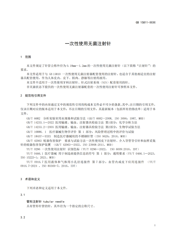 我们将《一次性使用无菌注射针》征求意见稿正文内容以图片形式转载如下: