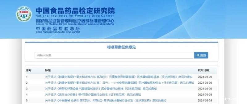 8月9日,国家药监局医疗器械标准管理中心发布几则关于征求医疗器械行业标准意见的通知,通知显示,近期共有10项标准形成了征求意见稿,具体明细如下: