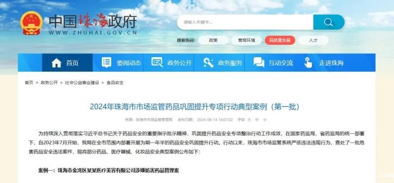 近日,珠海市市场监督管理局发布《2024年珠海市市场监管药品巩固提升专项行动典型案例(第一批)》,公布了五个药品、医疗器械、化妆品安全典型案例,其中与医疗器械有关的案例具体如下: