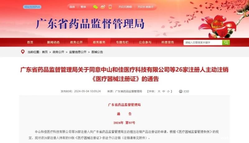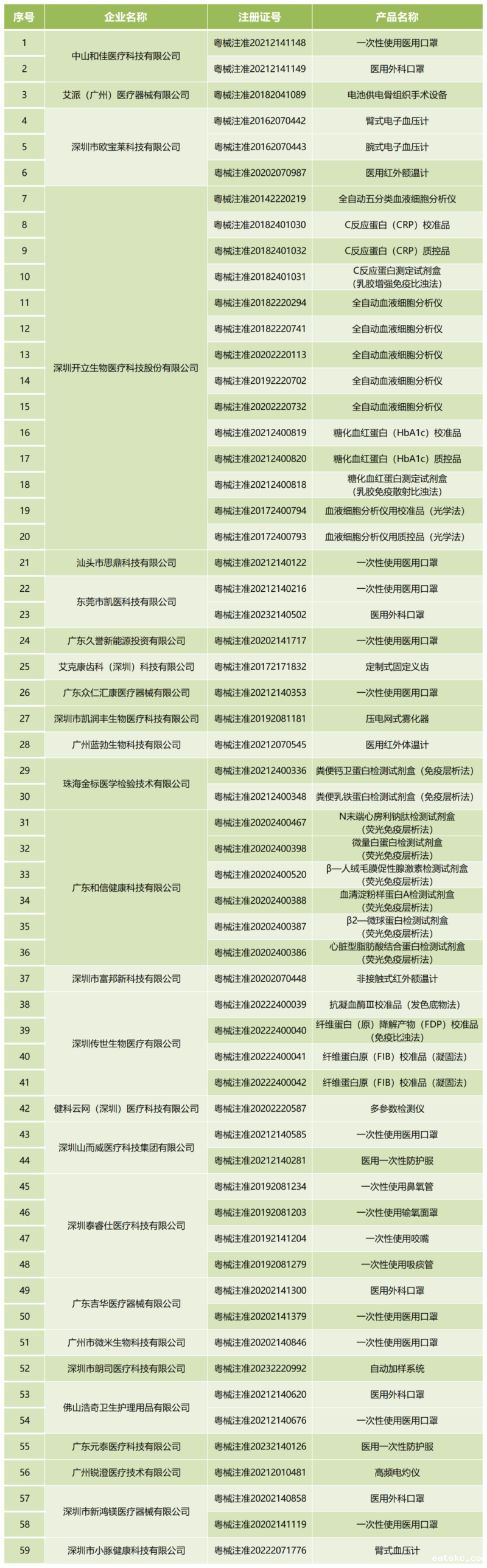 9月4日,广东药监局发布通告称,深圳开立生物医疗科技股份有限公司、广东和信健康科技有限公司、健科云网(深圳)医疗科技有限公司26家注册人向广东省药品监督管理局主动提出注销产品注册证的申请,我们通过查看附件发现,本次注销产品中有较多的体外诊断试剂,医用口罩同样占比不少,除此之外,还有血压计、体温计、高频电灼仪、多参数检测仪等共计59款产品。具体清单如下: