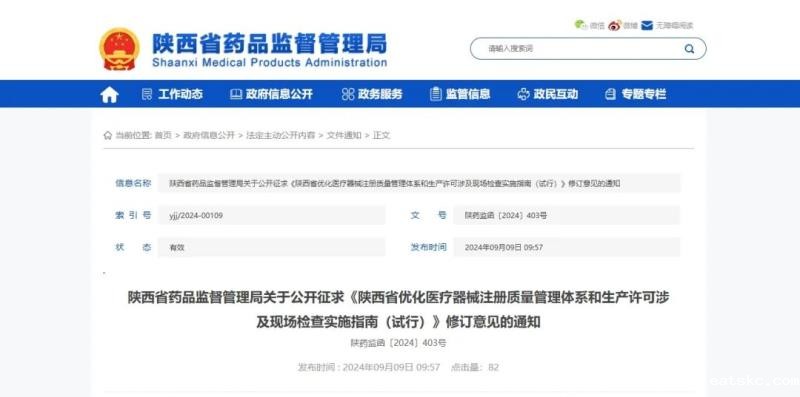 近日,陕西省药监局对《陕西省优化医疗器械注册质量管理体系和生产许可涉及现场检查实施指南(试行)》(以下简称《指南》)进行修订,并对修订的内容公开征求意见和建议。