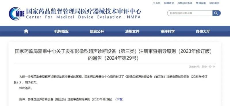 近日,国家药监局器审中心发布《影像型超声诊断设备(第三类)注册审查指导原则(2023年修订版)》(以下简称《指导原则》),该指导原则适用于第三类影像型超声诊断设备的注册申报,包括超声脉冲回波成像设备,分类编码06-07-01;超声回波多普勒成像设备,分类编码06-07-02;超声探头,分类编码06-08-04;超声电子内窥镜06-17-04。
