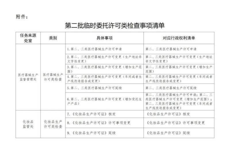 近日,江西药监局发布通知称,根据工作需要,从2024年10月21日起,将原由省药品认证审评中心(省医疗器械技术审评中心)承办的医疗器械、化妆品许可类检查事项2大类共9个事项临时委托给省药品检查员中心(省疫苗检查中心)承办,省药品认证审评中心(省医疗器械技术审评中心)不再办理上述事项,具体如下: