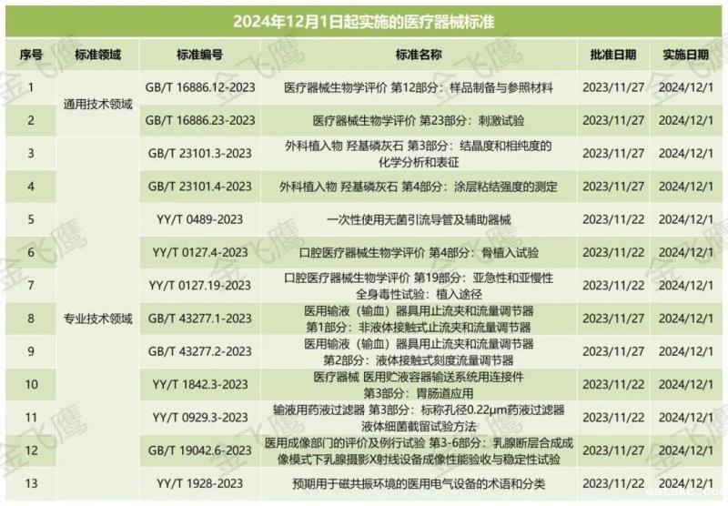 转眼就到2024年最后一个月了,在本月第一个工作日,按咱们的老规矩,又来跟大家盘点一波医疗器械标准实施动态:自2024年12月1日起正式实施的共有13项医疗器械标准,这其中包括2项GB/T 16886系列标准:GB/T 16886.12-2023《医疗器械生物学评价 第12部分:样品制备与参照材料》、GB/T 16886.23-2023《医疗器械生物学评价 第23部分:刺激试验》,所有标准实施明细如下: