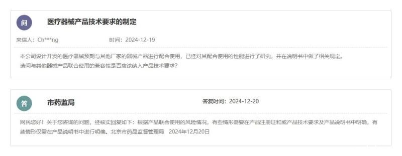 根据北京市药监局的答复,根据产品联合使用的风险情况,有些情形需要在产品注册证和或产品技术要求及产品说明书中明确,有些情形仅需在产品说明书中进行明确。