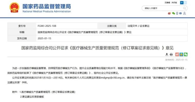 1月15日,国家药监局发布《医疗器械生产质量管理规范(修订草案征求意见稿)》(以下简称“新版《规范》”),并向社会公开征求意见。