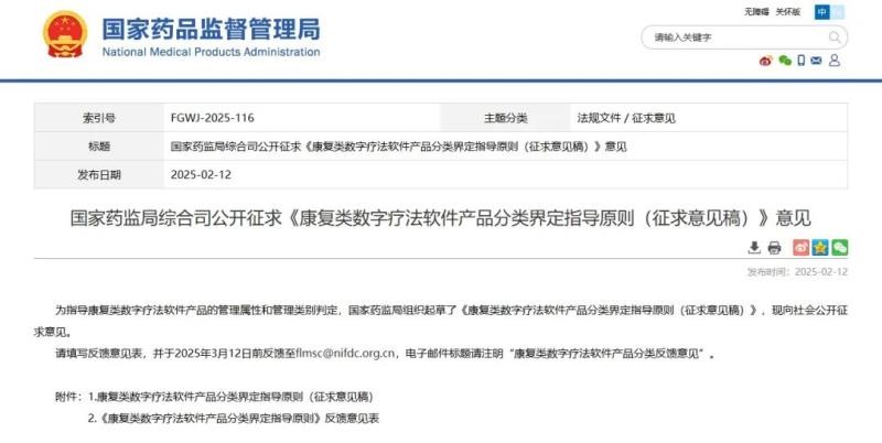 近日,国家药监局综合司发布《康复类数字疗法软件产品分类界定指导原则(征求意见稿)》(以下简称《指导原则》),并向社会公开征求意见。