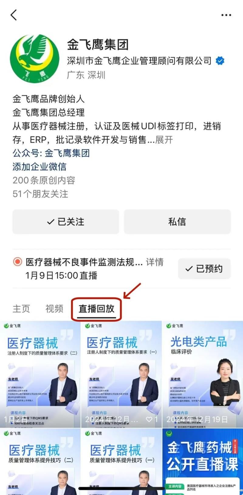 往期直播培训课程支持回放,关注“betway必威西盟体育官网入口药械咨询服务”视频号并点击视频号主页,即可查看“直播回放”哦~