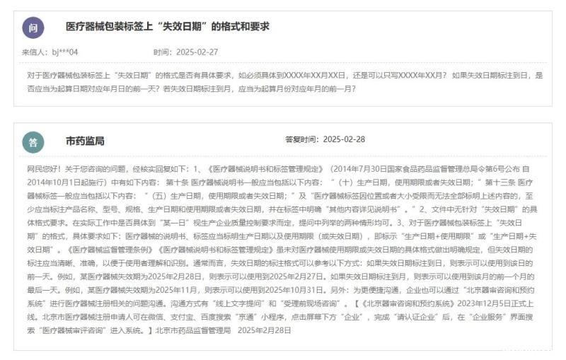 近期,北京市药监局发布了一则有关医疗器械“失效日期”标注的问答,可能部分企业对此也会有疑问,我们特转载分享给大家。
